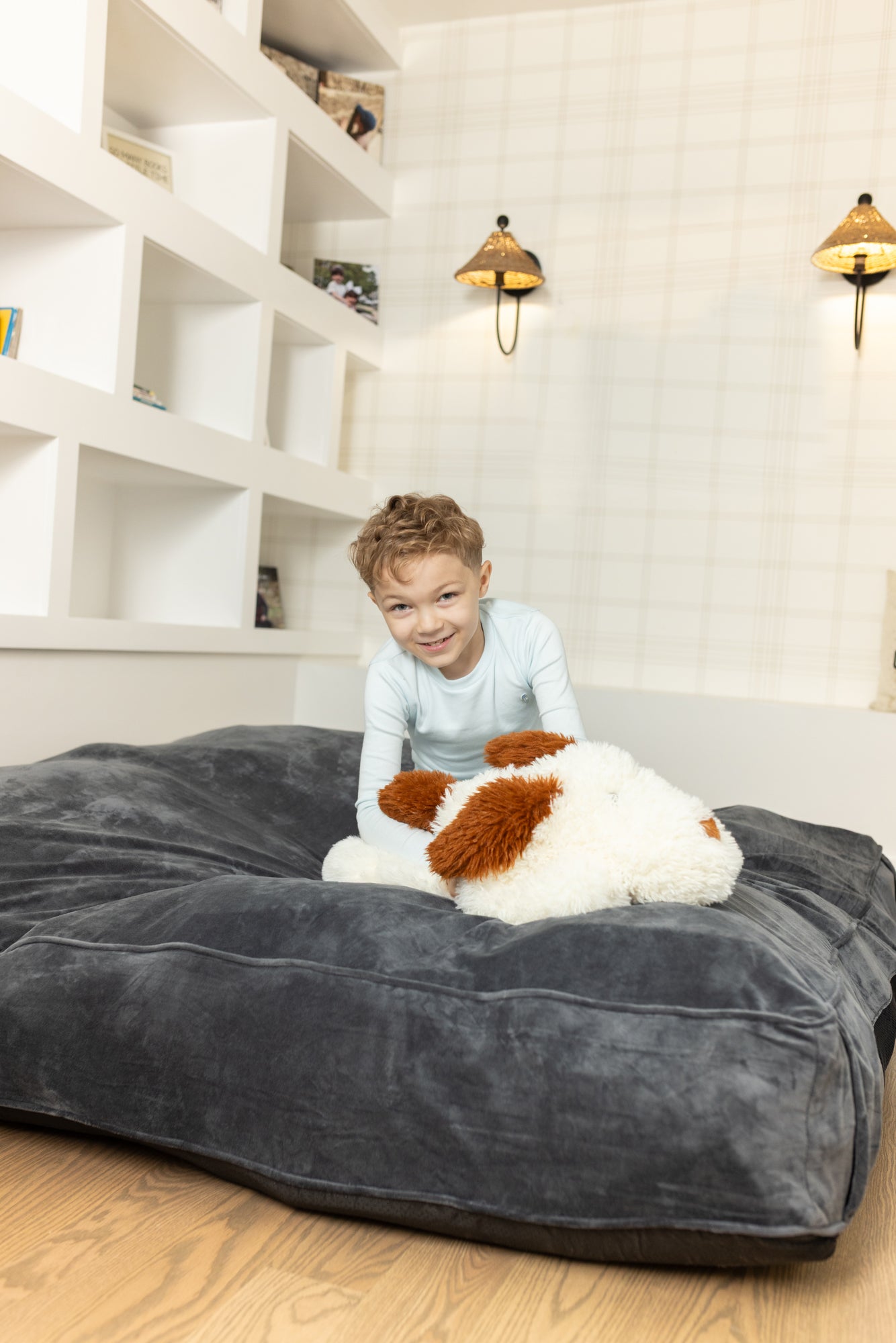 The Many Minds Crash Pad provides a safe, beautifully designed landing surface for active play spaces while maintaining the elevated aesthetic families expect from Smart Playrooms.